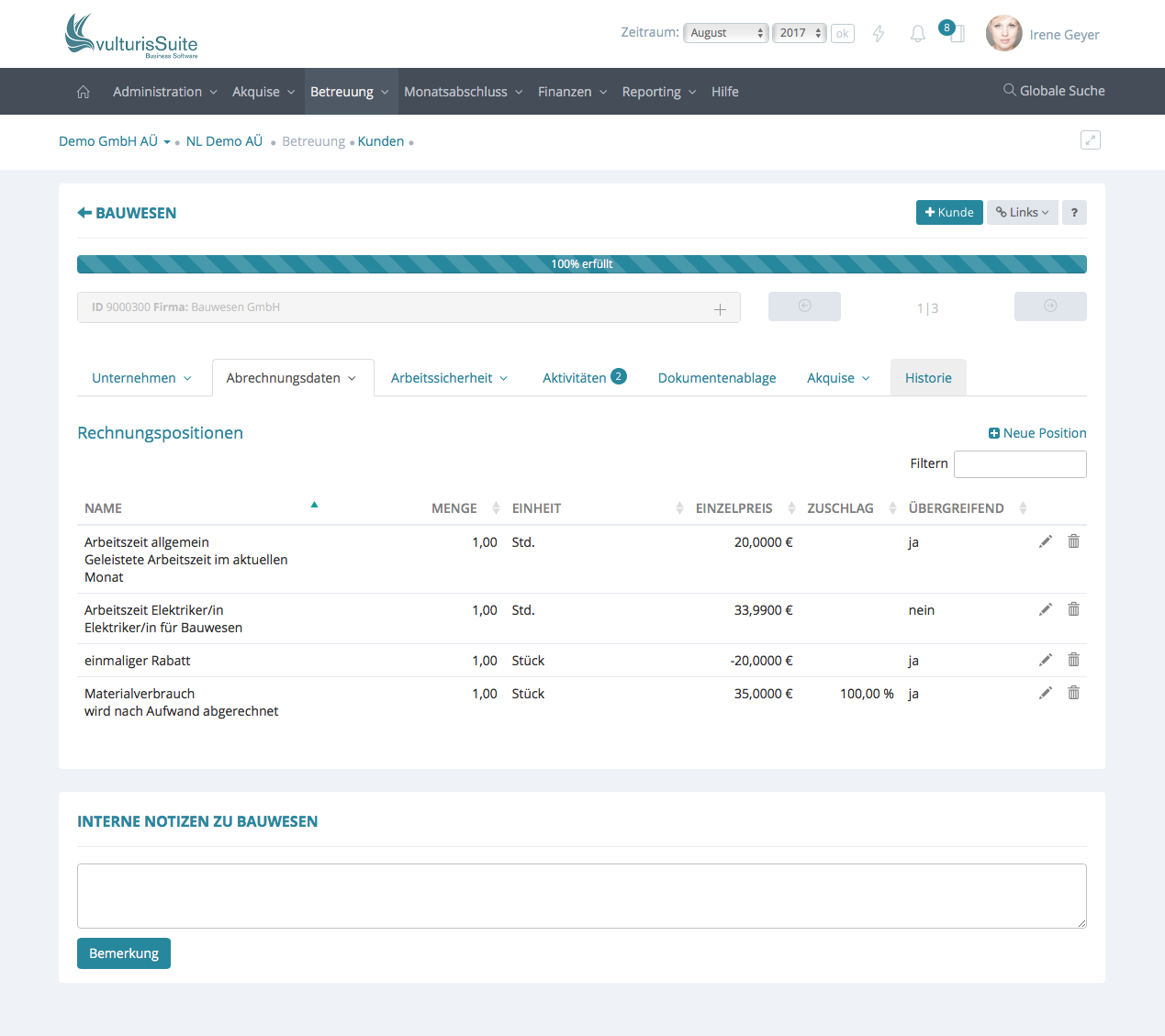 < zurück: Abrechnungsdaten – Rechnungsvorgaben