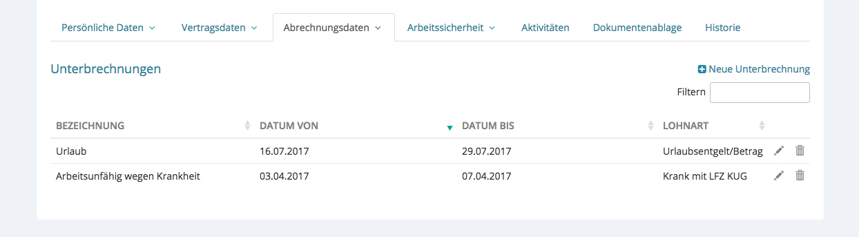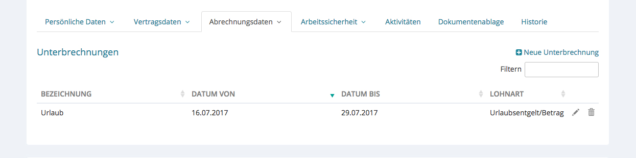 Nach dem Speichern, erscheinen die Unterbrechungen in der Übersicht. Sie können unbegrenzt viele Unterbrechungen hinzufügen.