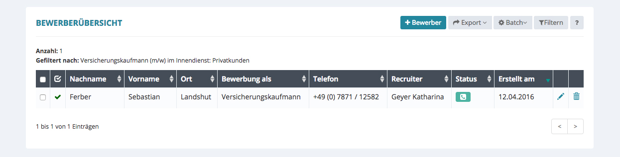 Wie ein Bewerber manuell zugeordnet wird erfahren Sie hier: Bewerber – Bewerbungen.