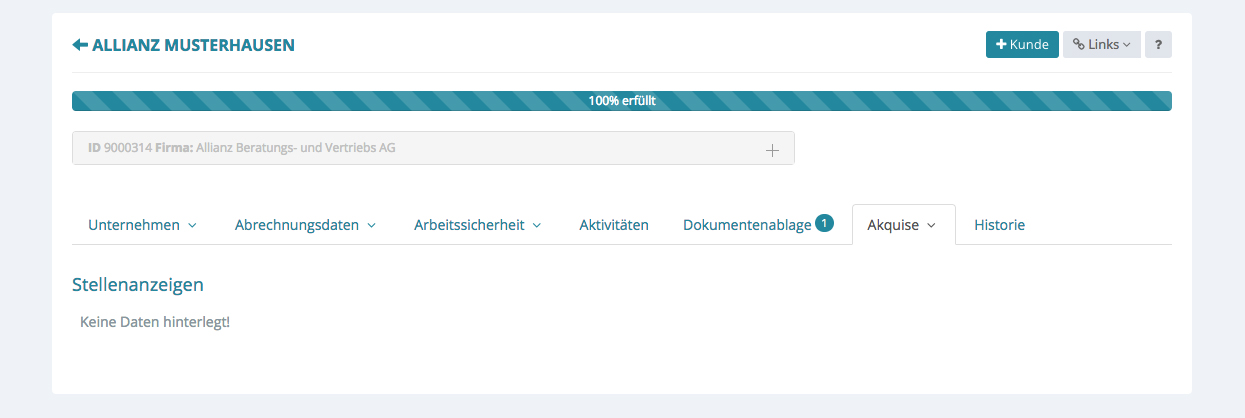 Kunde – Übersicht der Stellenanzeigen und Projekte