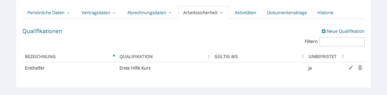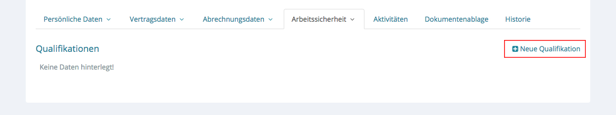 Legen Sie alle erworbenen Qualifikationen hier an. Klicken Sie dazu auf „Neue Qulifikation“.