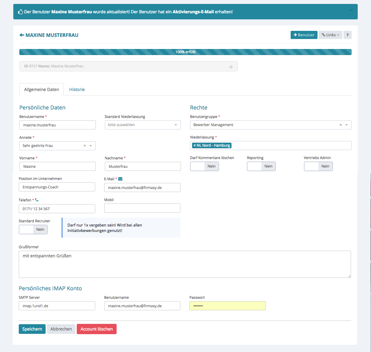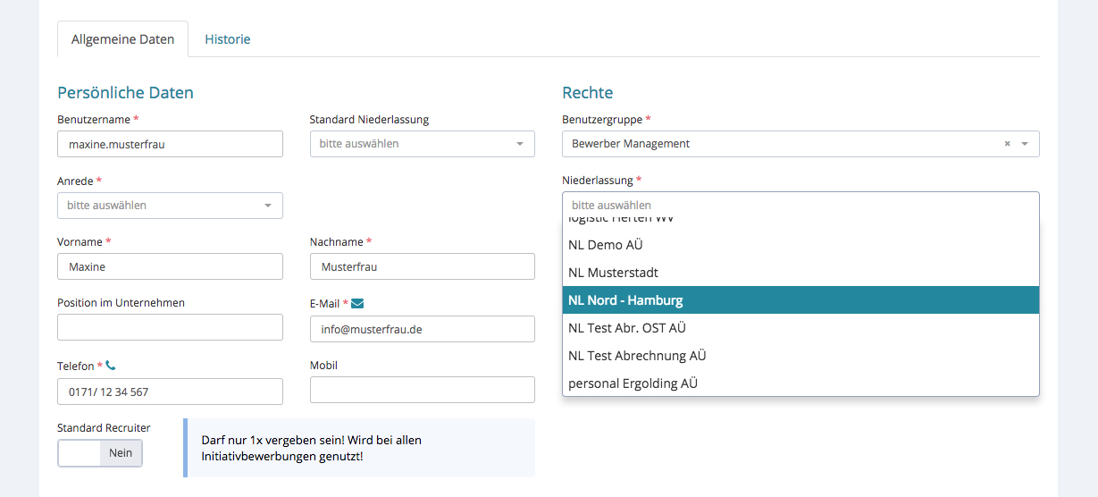 Der Standard Recruiter bekommt automatisch alle Initiativbewerbungen zugewiesen.