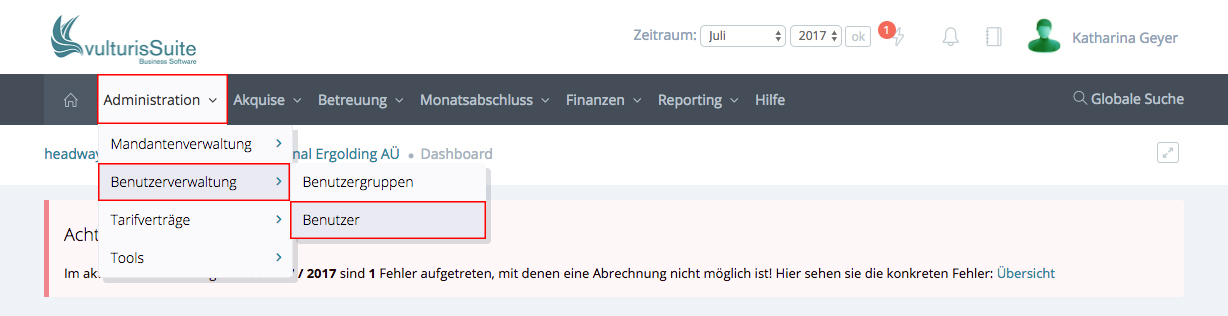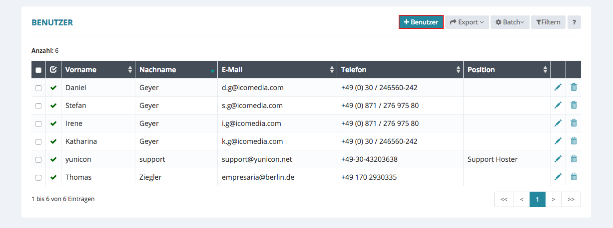 Um zu der Listenansicht der Benutzer zu gelangen, klicken Sie bitte in der Menüleiste auf