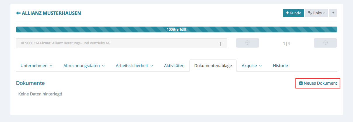 Bisher sind noch keine Daten hinterlegt, um dies zu tun klicken sie unten rechts auf „+ Neues Dokument“.