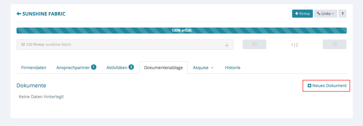 Bisher sind noch keine Daten hinterlegt, um dies zu tun klicken sie unten rechts auf „+ Neues Dokument“.
