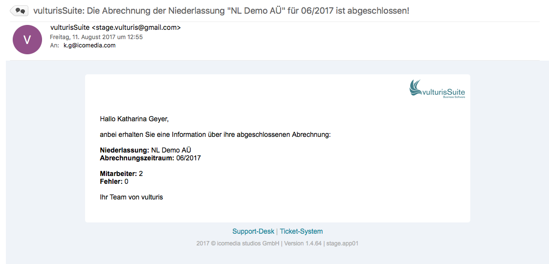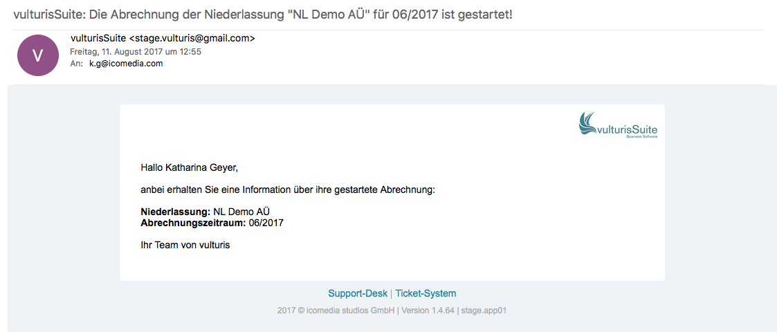 Separat erhalten Sie per Mail eine Benachrichtigung, das die Einrechnung gestartet ist und eine, wenn Sie abgeschlossen ist.