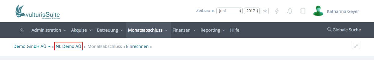 Wenn Sie über mehrere Niederlassungen verfügen, für die Sie einrechnen, prüfen Sie bitte als Erstes, ob Sie sich auch gerade in der Niederlassung befinden, die Sie einrechnen möchten.