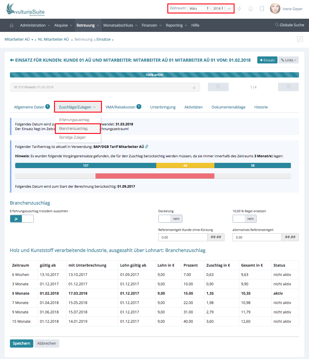 Zusätzlich können Sie festlegen ob der Erfahrungszuschlag trotz Branchenzuschlag ausbezahlt wird und/oder ob eine Deckelung usw. zu tragen kommt.