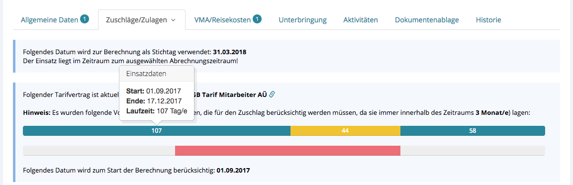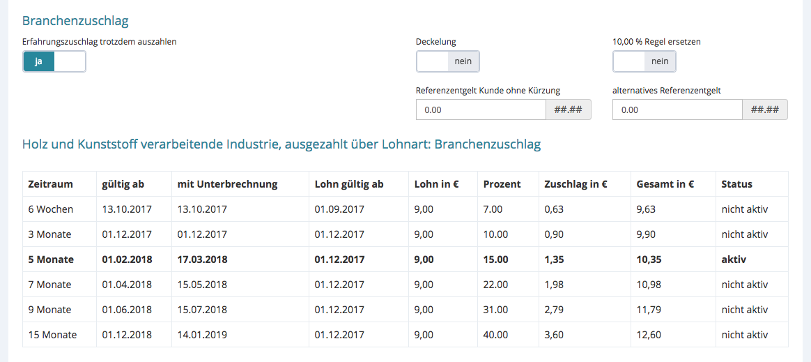 In der Tabelle wird ersichtlich welcher Zuschlag, mit all seinen Werten, gerade aktiv ist bzw. ab wann der nächste Zuschlag zählt.