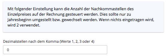 Im Eingabefeld „Dezimalstellen nach dem Komma“ legen Sie die Anzahl der Nachkommastellen beim Einzelpreis in der Rechnung fest.