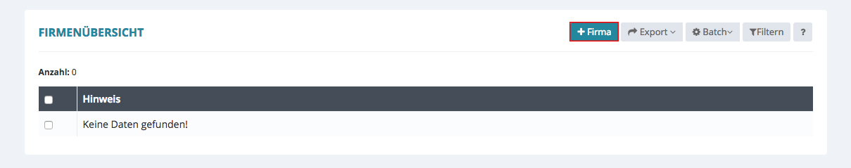Die FIRMENÜBERSICHT erscheint. Hier werden alle bis dahin eingetragenen Firmen angezeigt.