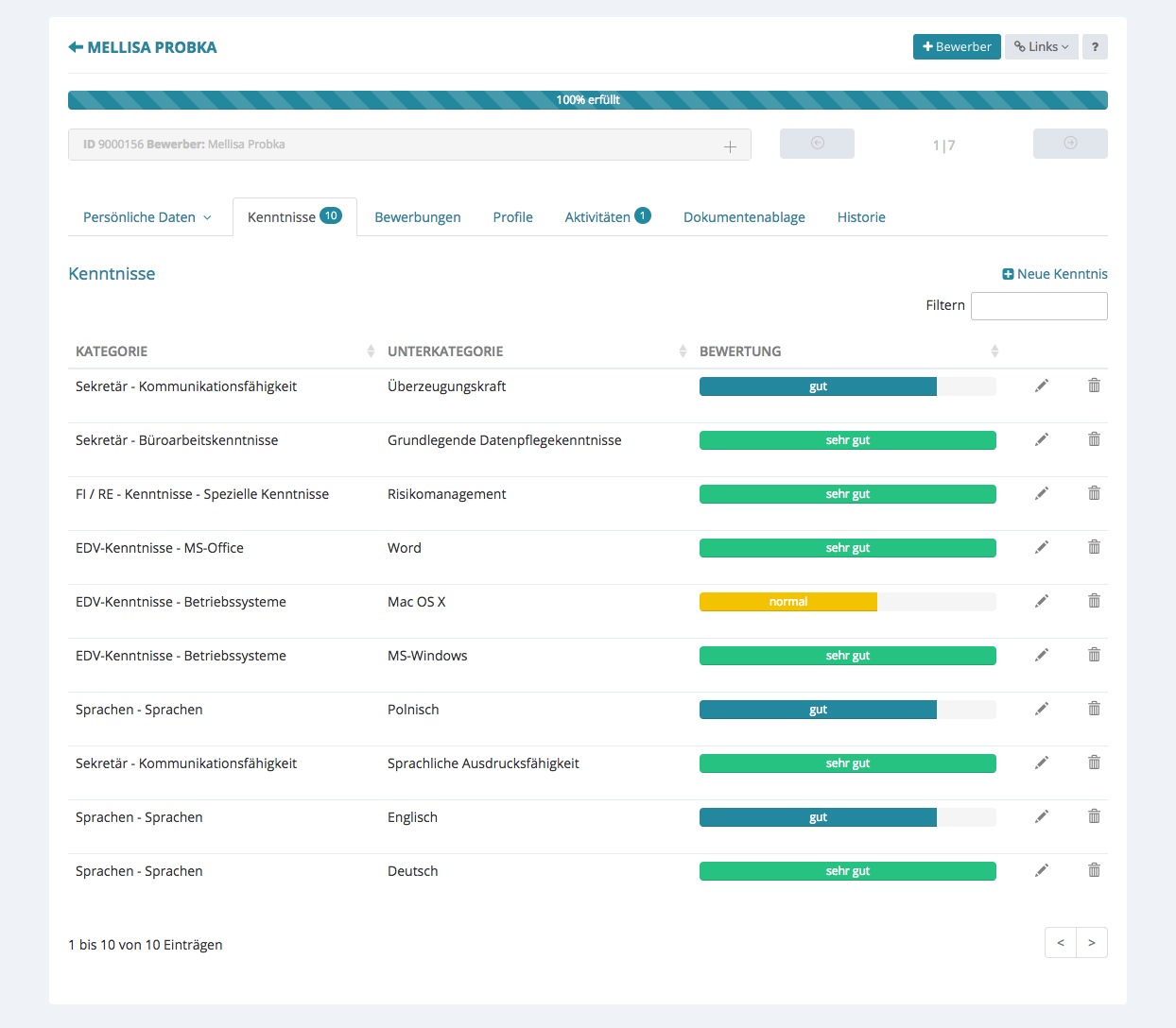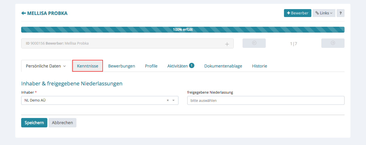 Bewerber anlegen – Kenntnisse