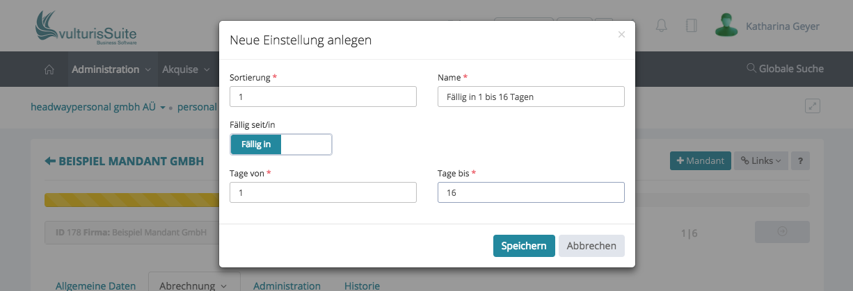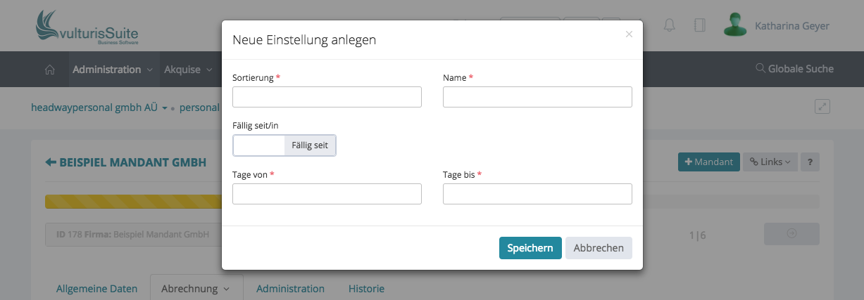 Um die offenen Posten zu hinterlegen klicken Sie bitte rechts auf „Neue Einstellung“.