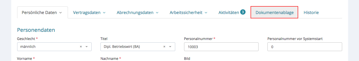 Um die Dokumentenablage aufzurufen, klicken Sie auf den Reiter „Dokumentenablage“.