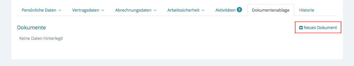 Bisher sind noch keine Daten hinterlegt, um dies zu tun klicken sie unten rechts auf „+ Neues Dokument“.