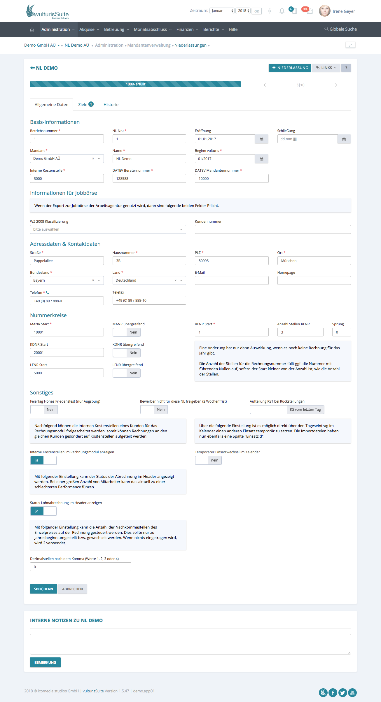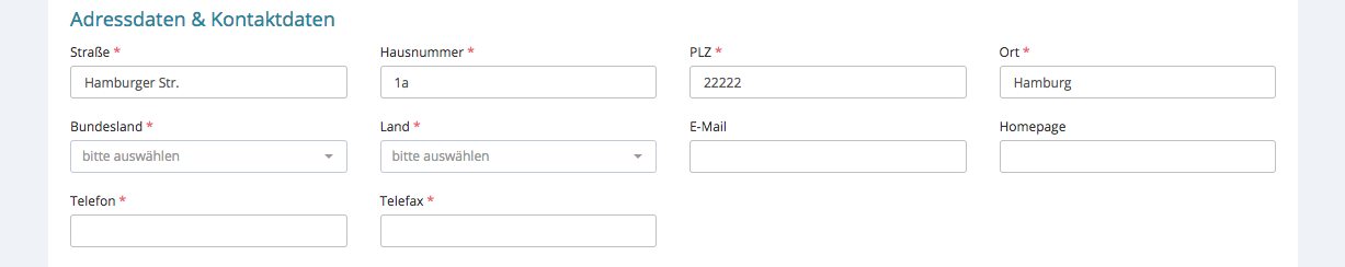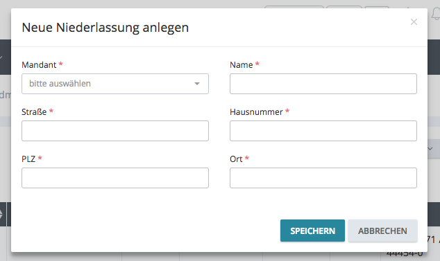 In dem Formular „Niederlassung neu“ ist es notwendig ALLE Felder zu befüllen!