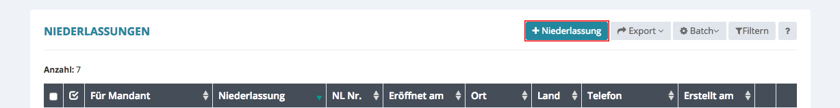 Niederlassung neu anlegen