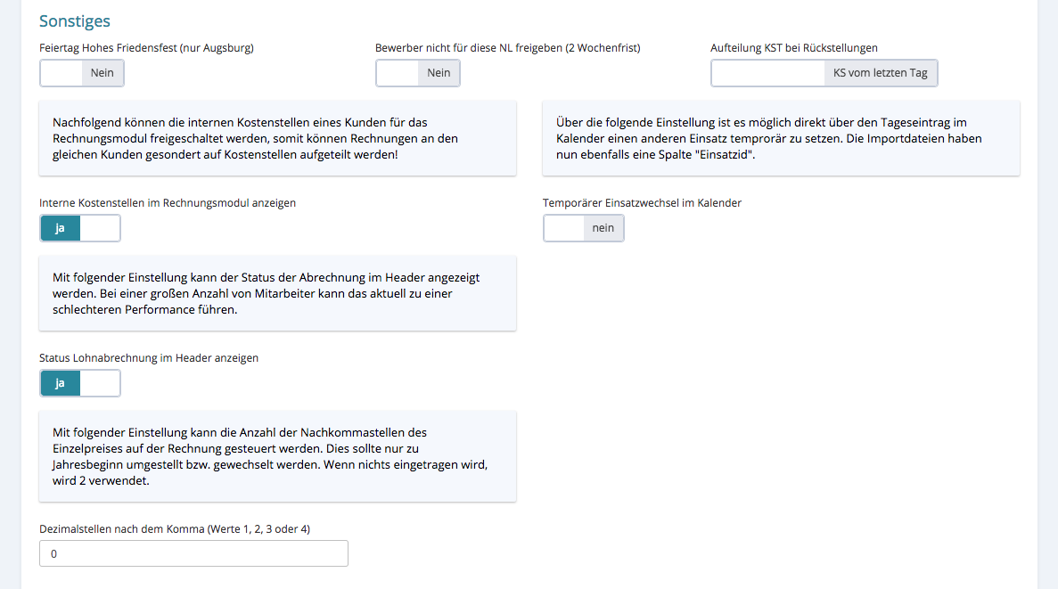Bewerber, die nach zwei Wochen nicht bearbeitet wurden, werden für alle Niederlassungen freigeschalten. Ist der Button auf „Nein“ gestellt, wird diese Niederlassung ausgelassen bzw. erfolgt keine Freigabe.
