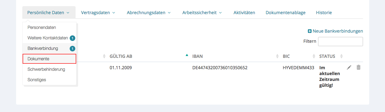 Klicken Sie bitte auf den Pfeil bei „Persönliche Daten“ und klicken auf „Bankverbindung“.