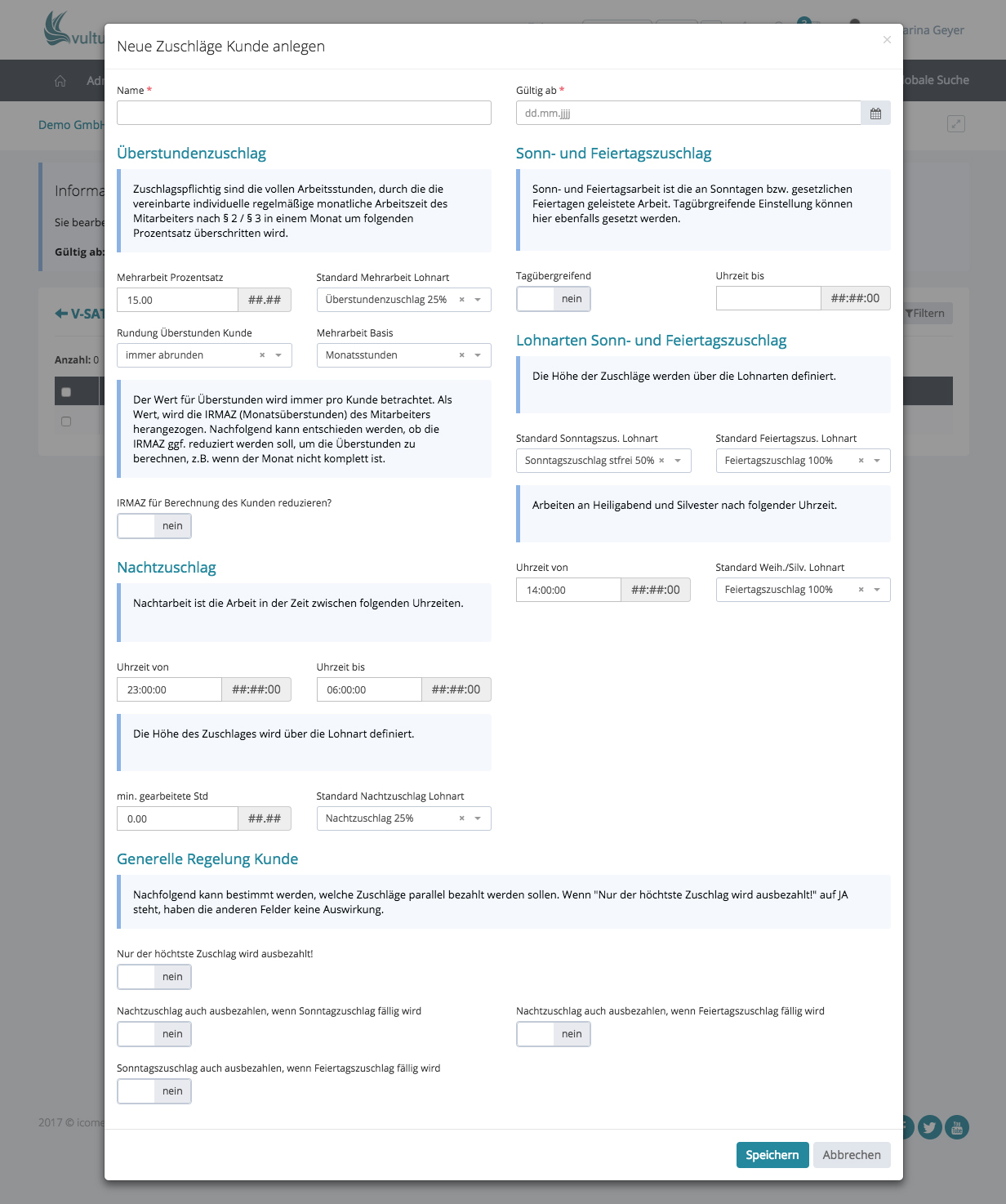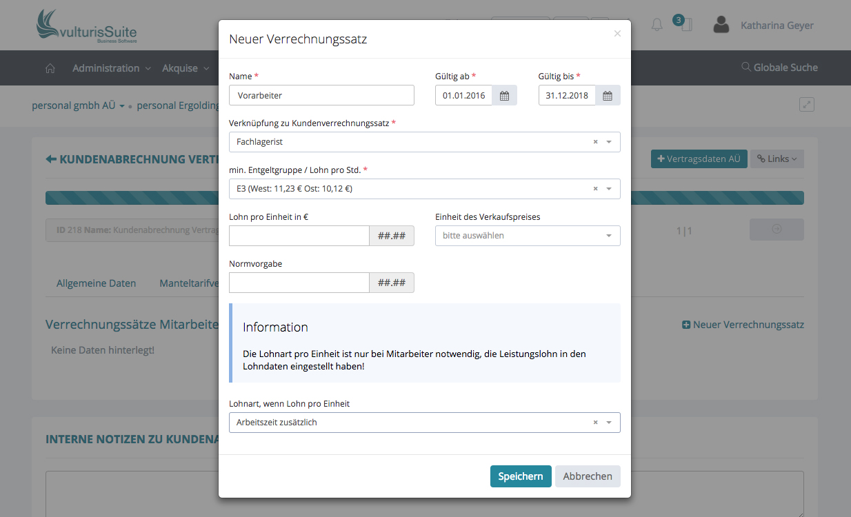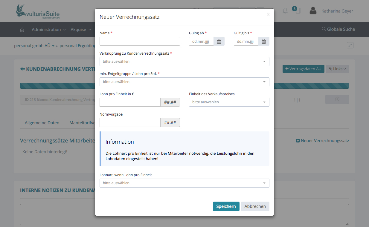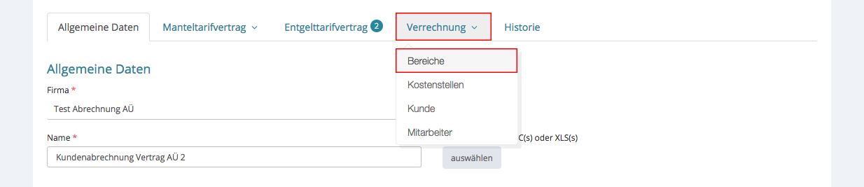 Handelt es sich bei dem Kunden z.B. um einen Supermarkt, braucht dieser Mitarbeiter in verschiedenen Bereichen und zahlt z.B. Prämien oder extra Zuschläge. Diese Bereiche sind später wichtig für die Verrechnungssätze Kunde.