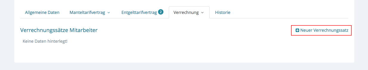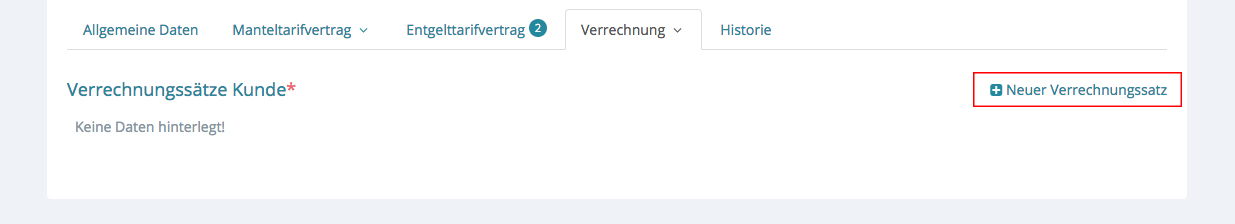Legen Sie einen an, indem Sie auf „+ Neuer Verrechnungssatz“ klicken.