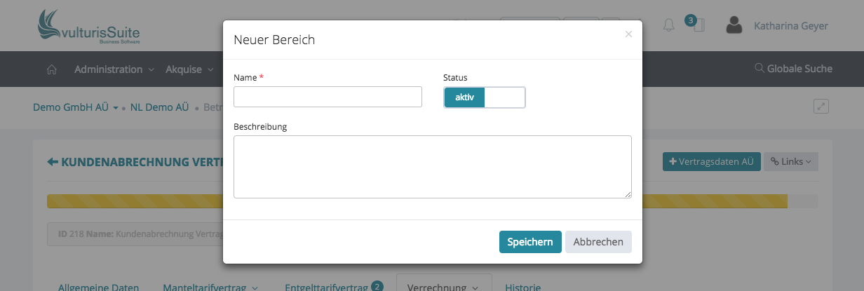 Sie können nun, einer besseren Übersicht zu liebe, die Bereiche anlegen, die von dem Vertrag betroffen sind.