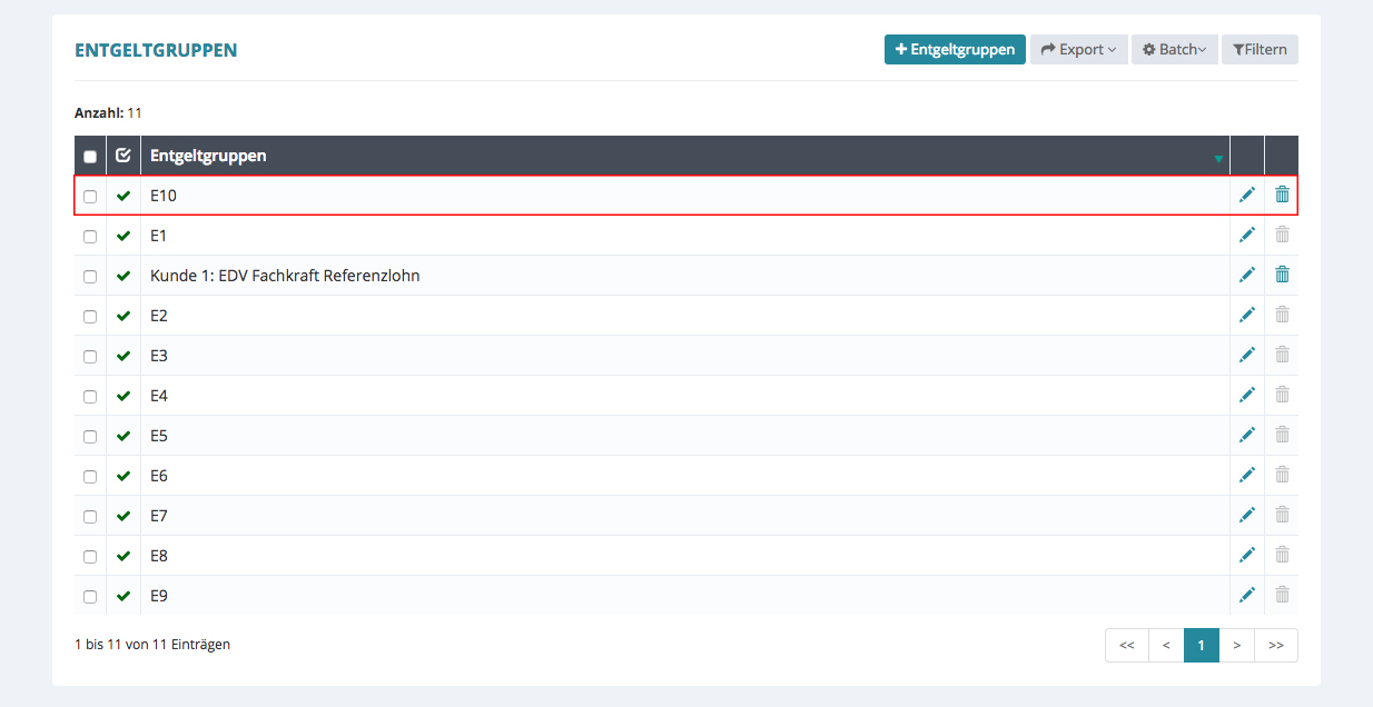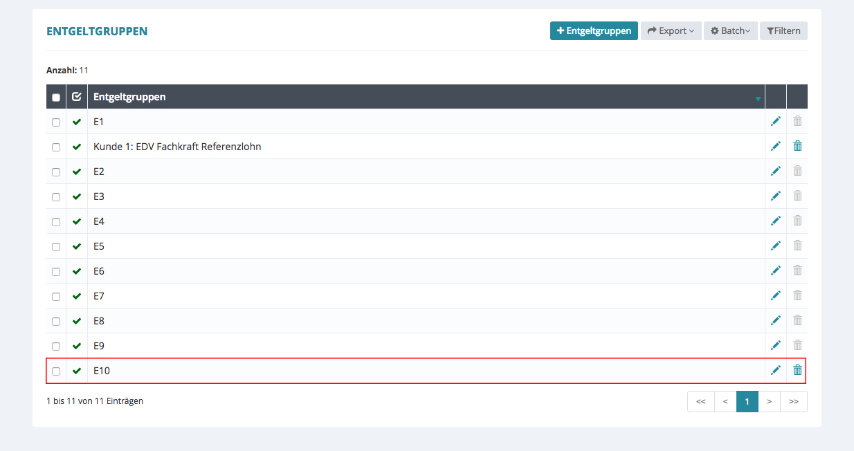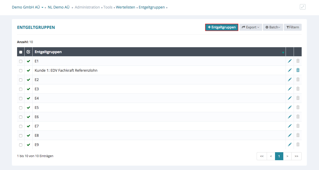 Die einzelnen Entgeltgruppen sind in den Wertelisten hinterlegt.