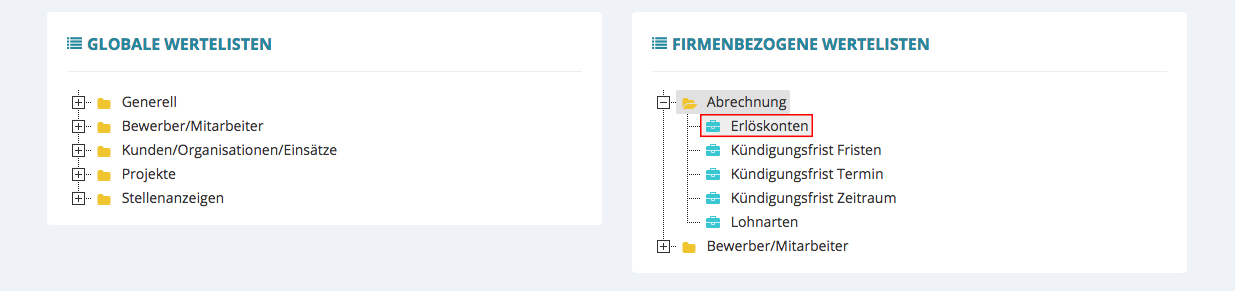 Die einzelnen Erlöskonten sind in den Wertelisten hinterlegt.