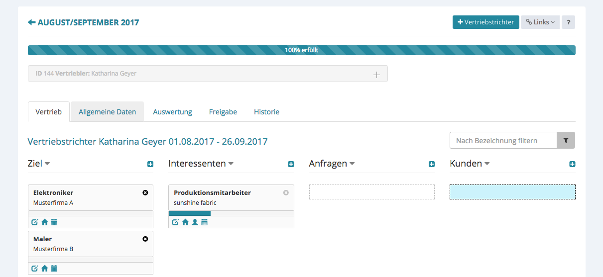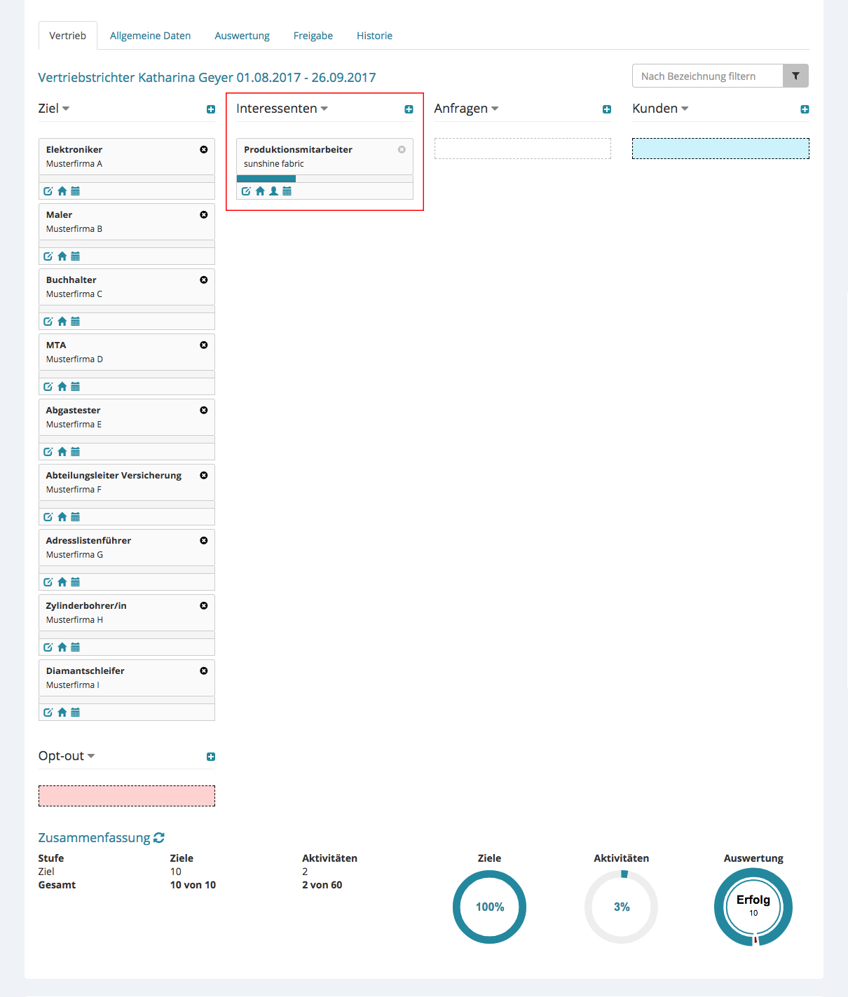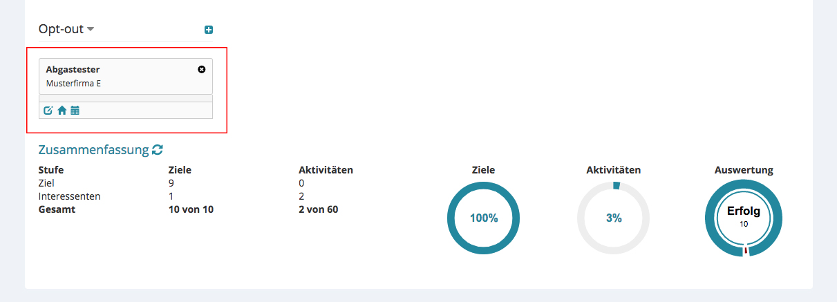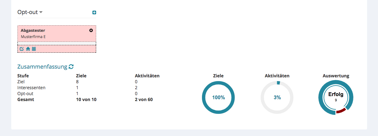Leider kann es natürlich auch zu einer Ablehnung des Kunden kommen, dann wird das Ziel in die rote Rubrik „Opt-out“ gezogen.